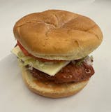 CRISPY BREADED CHICKEN FILET WITH LETTUCE, TOMATOES, MAYO, AND AMERICAN CHEESE